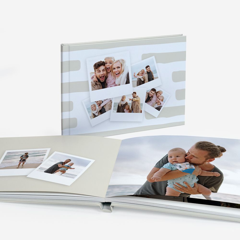 A capa rígida em cartão duro oferece proteção adicional e um acabamento elegante ao teu álbum.